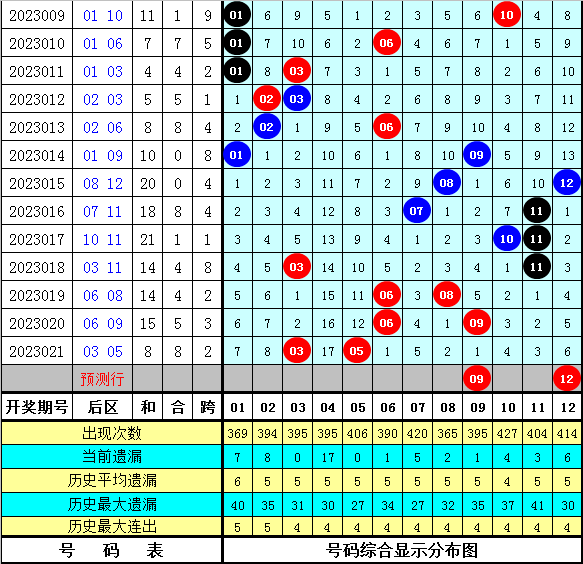 本期后区提防四码07、09、10、12,单挑两码09、12。