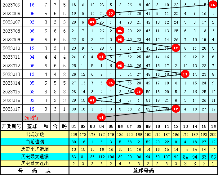 双色球第2023018期蓝球大范围参考:03、04、05、09、10、11、12、14;