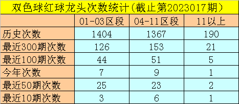 双色球最近10期龙头号码别离为:05、03、04、06、03、06、06、02、14、05,龙头号码出现范围在:02-14之间。