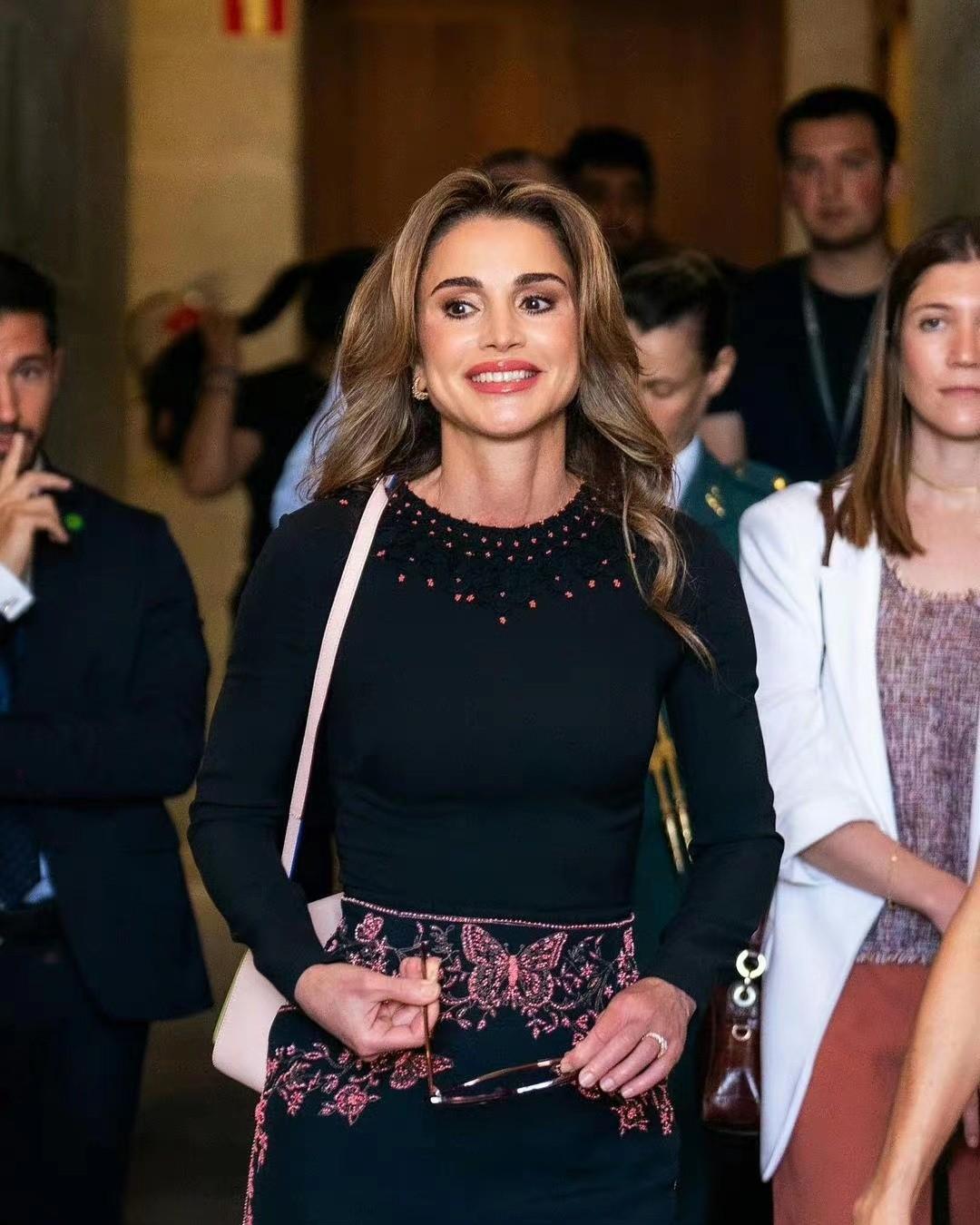 对比与一些彩色的裙子,玄色如实零落一些减龄感,然则却灵验的强化了气场,开释个东说念主的气质,气派上也更大气了,关于大面积玄色穿搭强调了“肤浅高等”的审好意思理念,在色调上的检朴,连合在细节上的处罚,将造型的高等感全面开释。约旦王后的这身造型很有职场女性气场全开的氛围感,这是女性一种王人备熟习的魔力。
