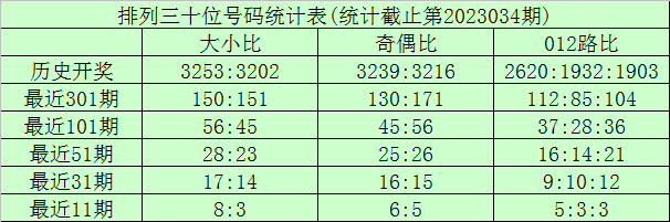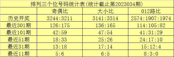 上期回归:成列三第2023034期奖号为:901。奖号花样组六,大小比1:2,奇偶比2:1,012路2:1:0。